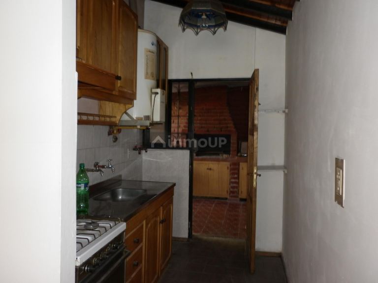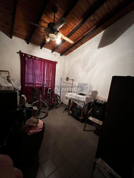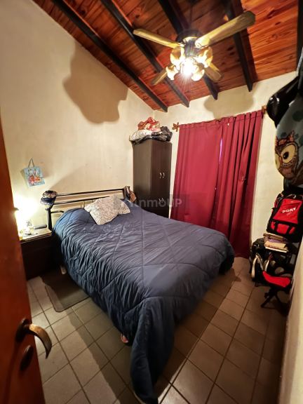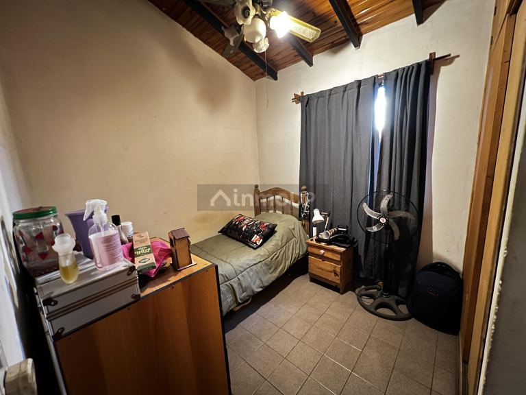COCINA con una mesada de acero inoxidable, cuenta con 2 alacenas de madera paraíso con repisa, una de dos puertas con estantes y la otra de 2 puertas con vidrios y estantes; un bajo mesada de madera paraíso de 4 puertas una con una división y la otra con 2 divisiones, cajoneras; una campana con mueble de madera paraíso de 2 puertas con divisiones, BAÑO (botiquín de acero inoxidable con espejo, con tres portalámparas con focos, un bidet, un inodoro con mochila, cuenta con todos sus accesorios; 3 DORMITORIOS con sendos ventiladores de techo con focos, un globo de vidrio pacú y tulipas, 2º dormitorio con placar de álamo y baulero; todas la ventanas de la casa tienen barrales de madera con su respectivo palo. PATIO lámpara blanca opaca labrada fija (embaldosado con churrasquera con parrilla de hierro, el sector donde se ubica la churrasquera esta techada con viguetas y membrana; Vemos una puerta de chapa maciza para salir al jardín con plantas, COCHERA embaldosada y con 1 reflector, techado con tela media sombra, con portón corredizo firme con una puerta peatonal; 5 rejas colocadas como protección en las 5 ventanas de la casa con sus respectivos vidrios.