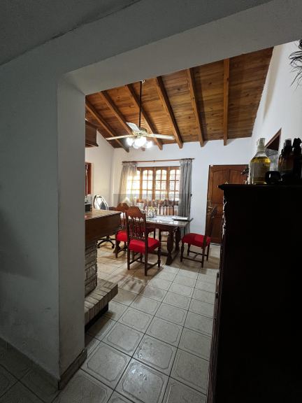 SUPERFICIE S/MENSURA: de 1.112,37 M2, SEGÚN TÍTULO: 1.112,53 M2, con una SUPERFICIE CUBIERTA: la casa frontal de 264m2 y la casa quincho de 128 m2 haciendo un total de superficie cubierta de 392 M2, cuenta con varios ingresos, el principal es por la puerta reja del AMPLIO JARDÍN a la casa que cuenta tres ingresos a distintos sectores, a la MULTI COCHERA con una parte techada pasante al patio; la otra entrada es al COMEDOR PRINCIPAL donde se encuentra una estufa hogar, a mano izquierda está la cocina con todo su mobiliario de madera y a mano derecha y al ESTAR COMEDOR, los otros ingresos son por la cochera y en el otro extremo esta el SALON COMERCIAL que tiene baño instalado y al frente una kitchenette, le sigue un ambiente que hoy se ocupa como sala de trabajo y le continúa hacia el interior Un sector de GALPONES al frente de los cuales está el patio de la casa con la churrasquera y el horno de barro, hay plantas y árboles.